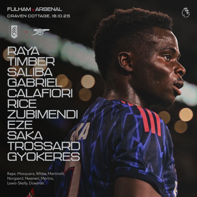 Arsenal travel to Fulham today to secure another victory and maintain their position at the top of the Premier League table once all the weekend’s fixtures have been completed. This is the team Mikel Arteta has chosen to achieve that goal.