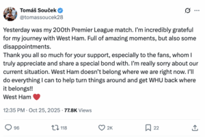 Tomas Soucek’s 200 – up for West Ham ended in ignominious defeat