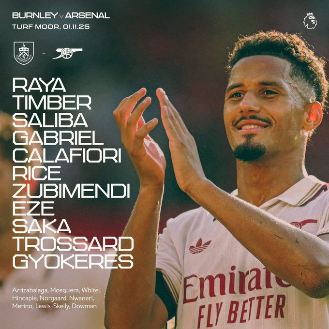 Arsenal travel to Burnley today in the Premier League as they look to maintain their impressive winning run, and this is the team chosen by Mikel Arteta to secure another three points.