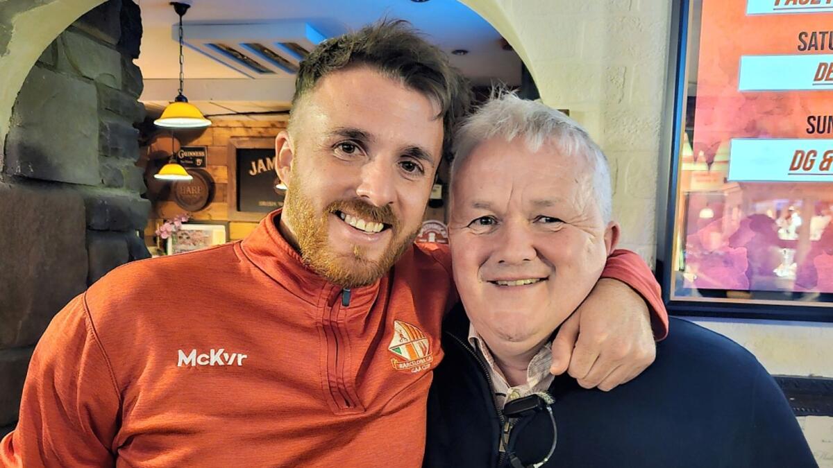 Seán Fagan with Kieran Clarke at Clarke's Bar, Mullingar, where Barcelona Gaels were welcomed after the big game.