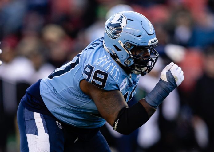 The six-foot-one, 285-pound defender was a standout with the Toronto Argonauts in 2024, his first year in the CFL, recording 22 tackles, eight sacks and one forced fumble. His eight sacks tied for the league lead.