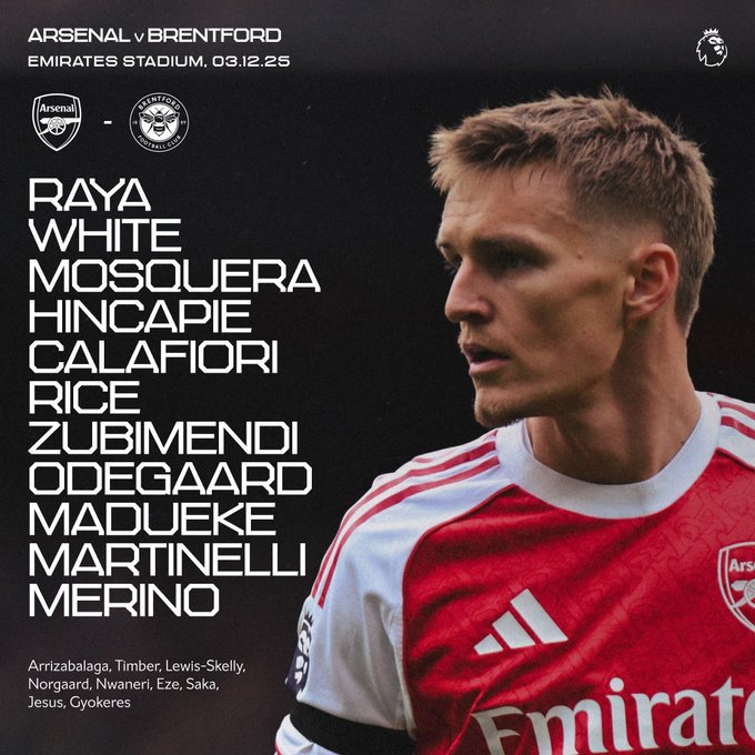 Arsenal welcomes Brentford to the Emirates tonight as they look to return to winning ways, and this is the team Mikel Arteta has announced to start the game.