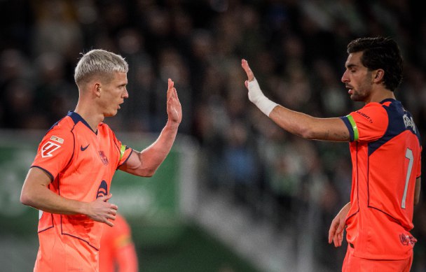Dani Olmo y Ferrán Torres celebrando un gol para el FC Barcelona/Foto tomada de la cuenta de la red social X del FC Barcelona.