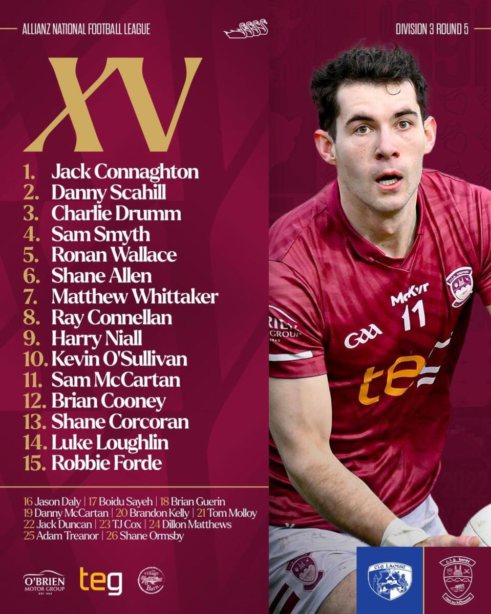Mark McHugh has named his Westmeath team to play Laois in Division 3 of the Allianz National Football League in O'Moore Park tomorrow evening at 6pm.