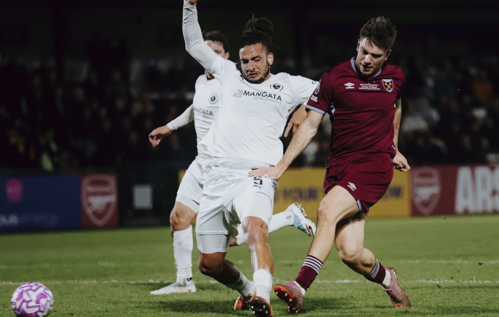 In the second half, Borehamwood pulled a goal back but looked to be beaten as West Ham’s goalkeeper Fin Herrick pulled off several fine saves to deny the senior home side.
